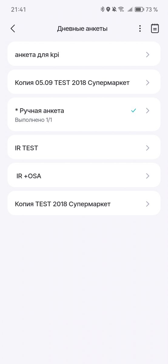 Выполненные анкеты отмечаются бирюзовой галочкой.