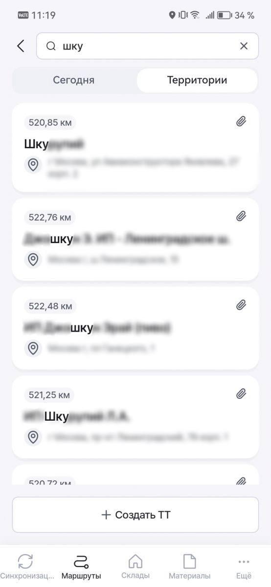 Для поиска нужной торговой точки воспользуйтесь специальными инструментами: блоком поиска, фильтрации и сортировки ТТ в списках: