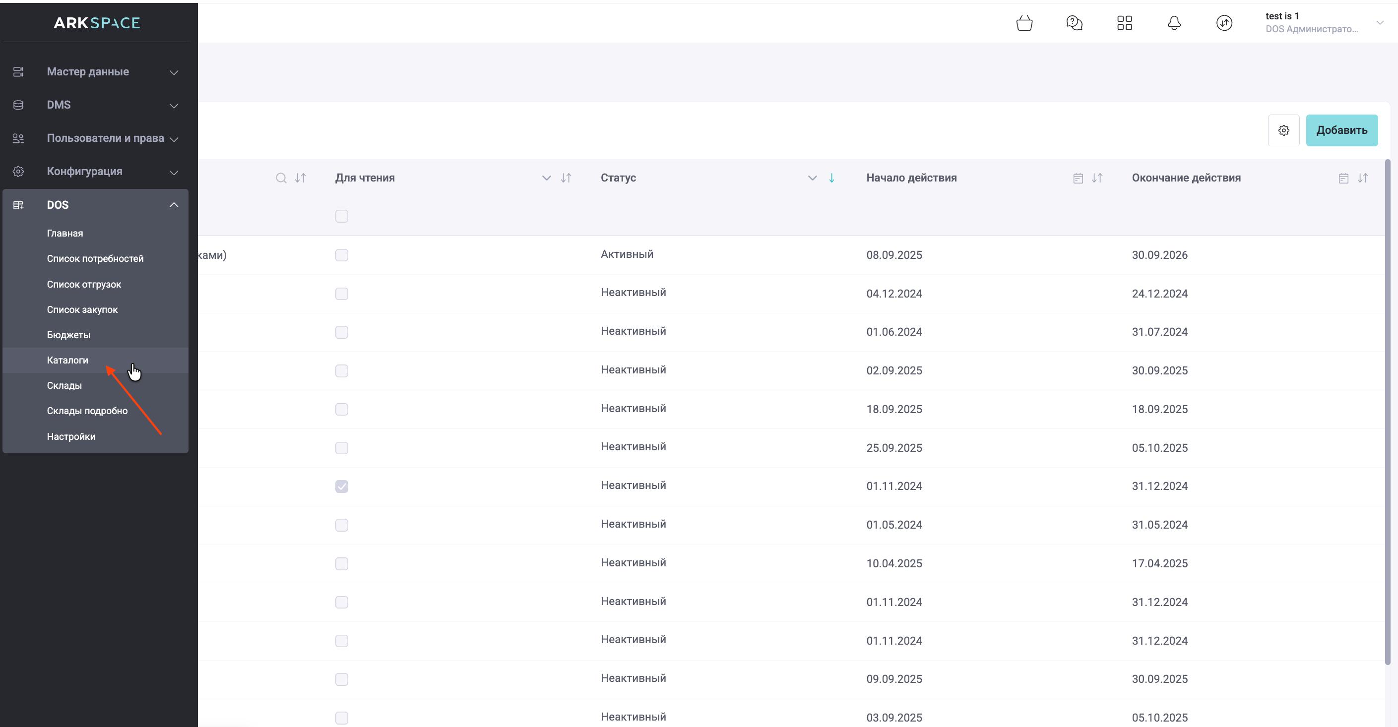 Для создания нового каталога, необходимо кликнуть на кнопку «Добавить».