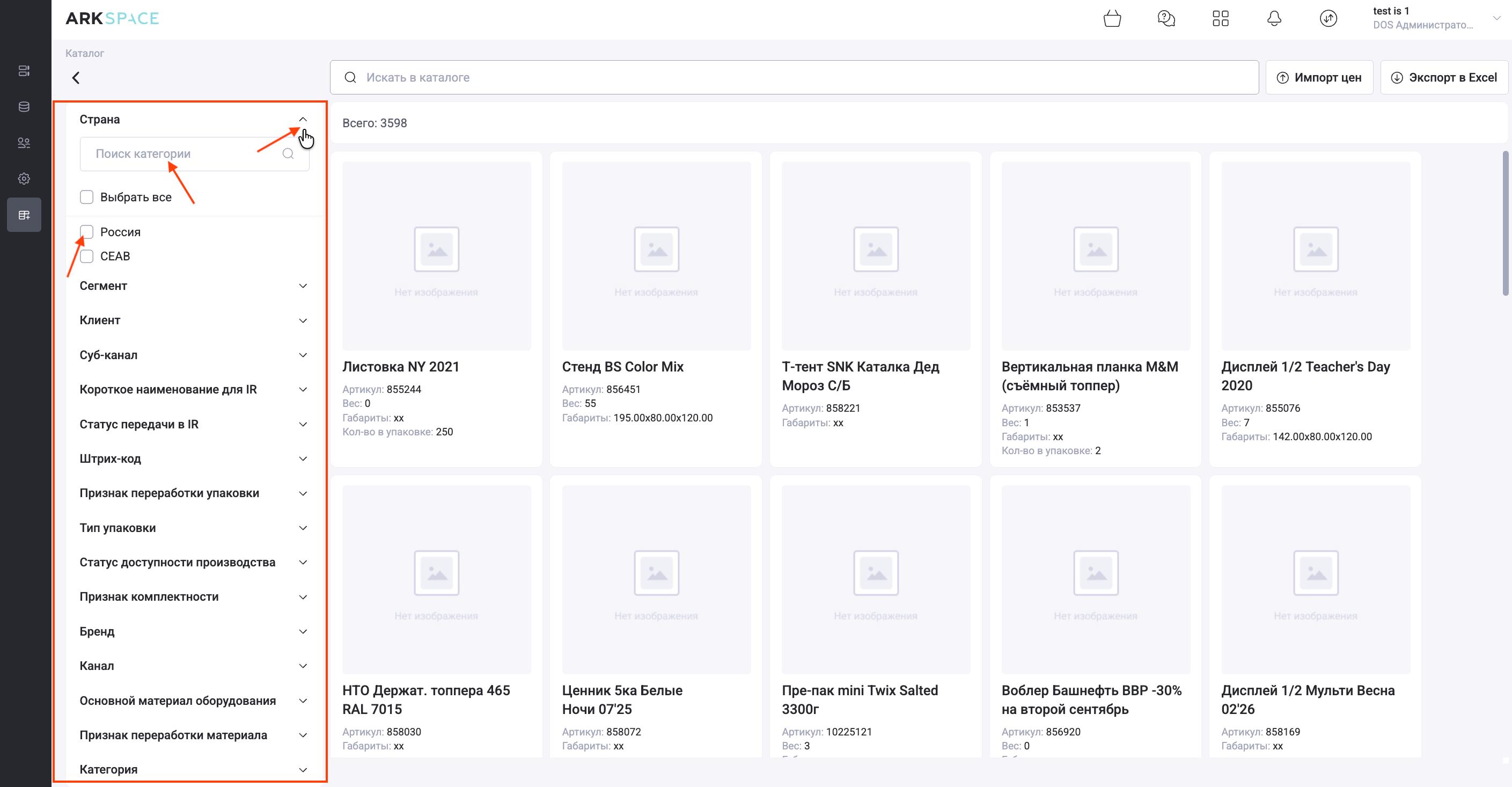 3. Ищем найденный POS-материал в текущем каталоге.