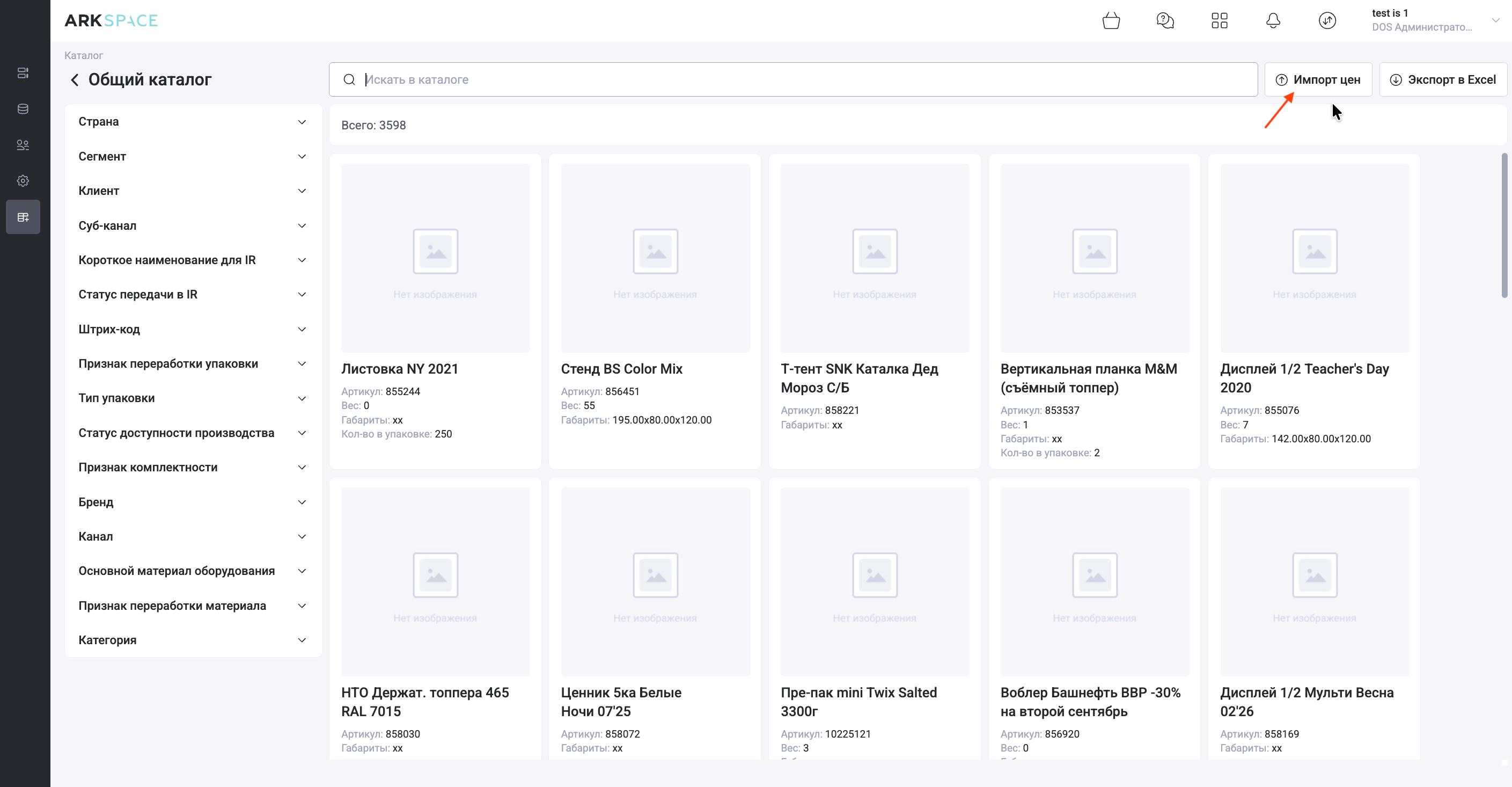 Чтобы внести/скорректировать/удалить цены по ТО Общего каталога, нажмите на кнопку "Импорт цен"