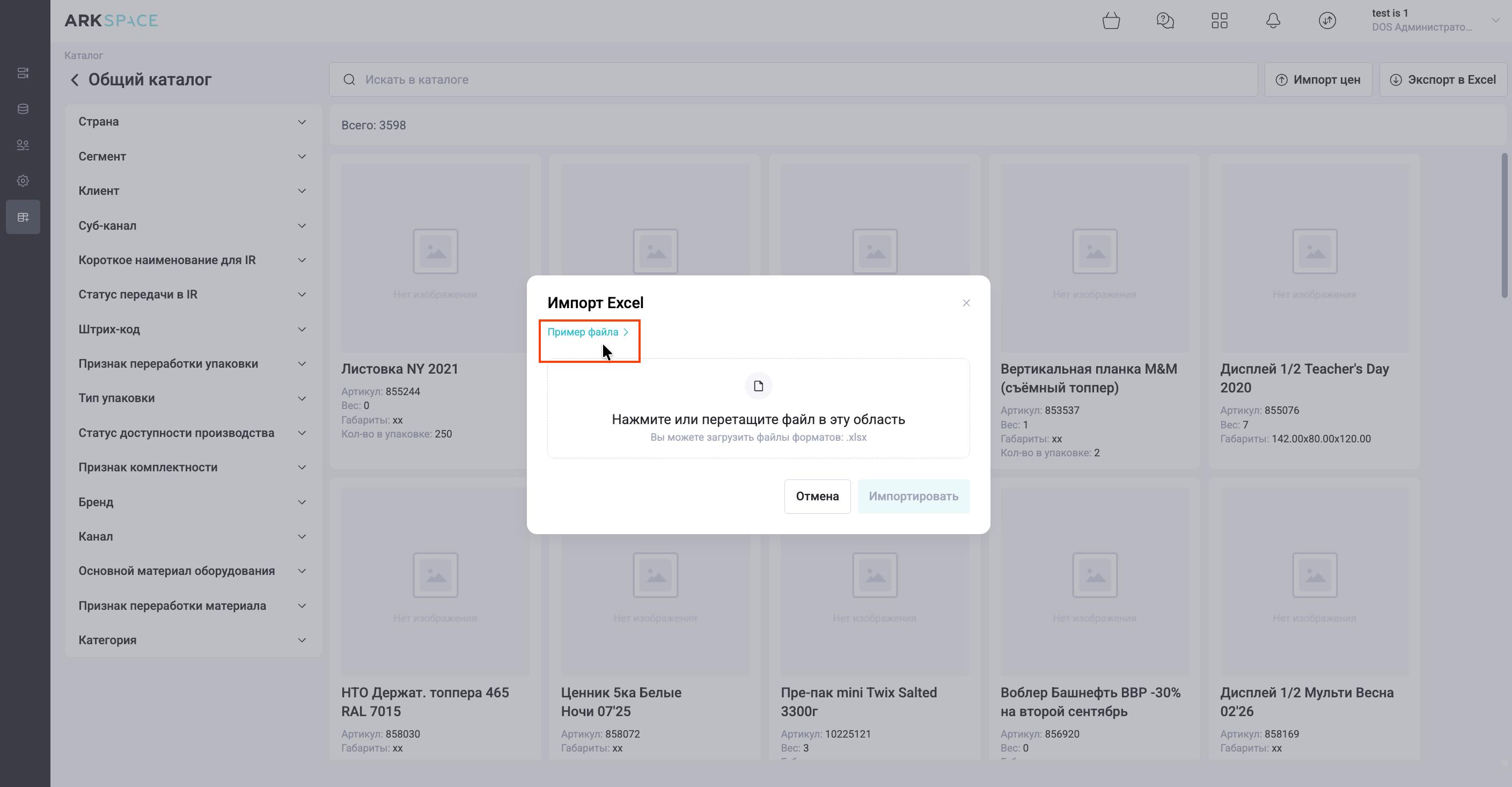 Импорт POS-материалов из файла Excel: