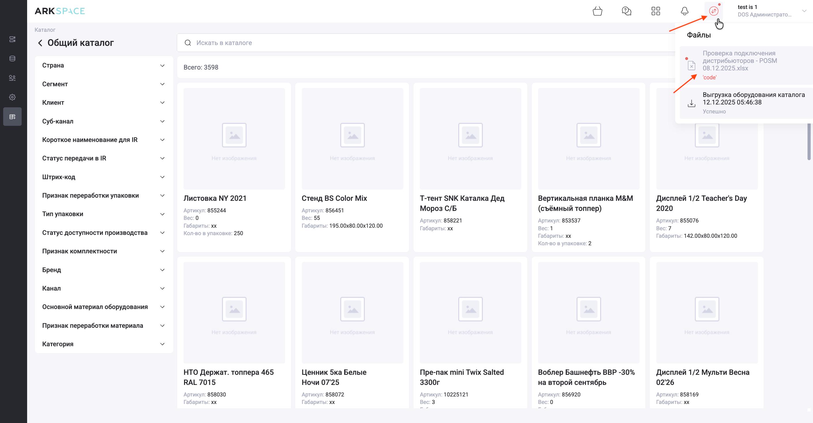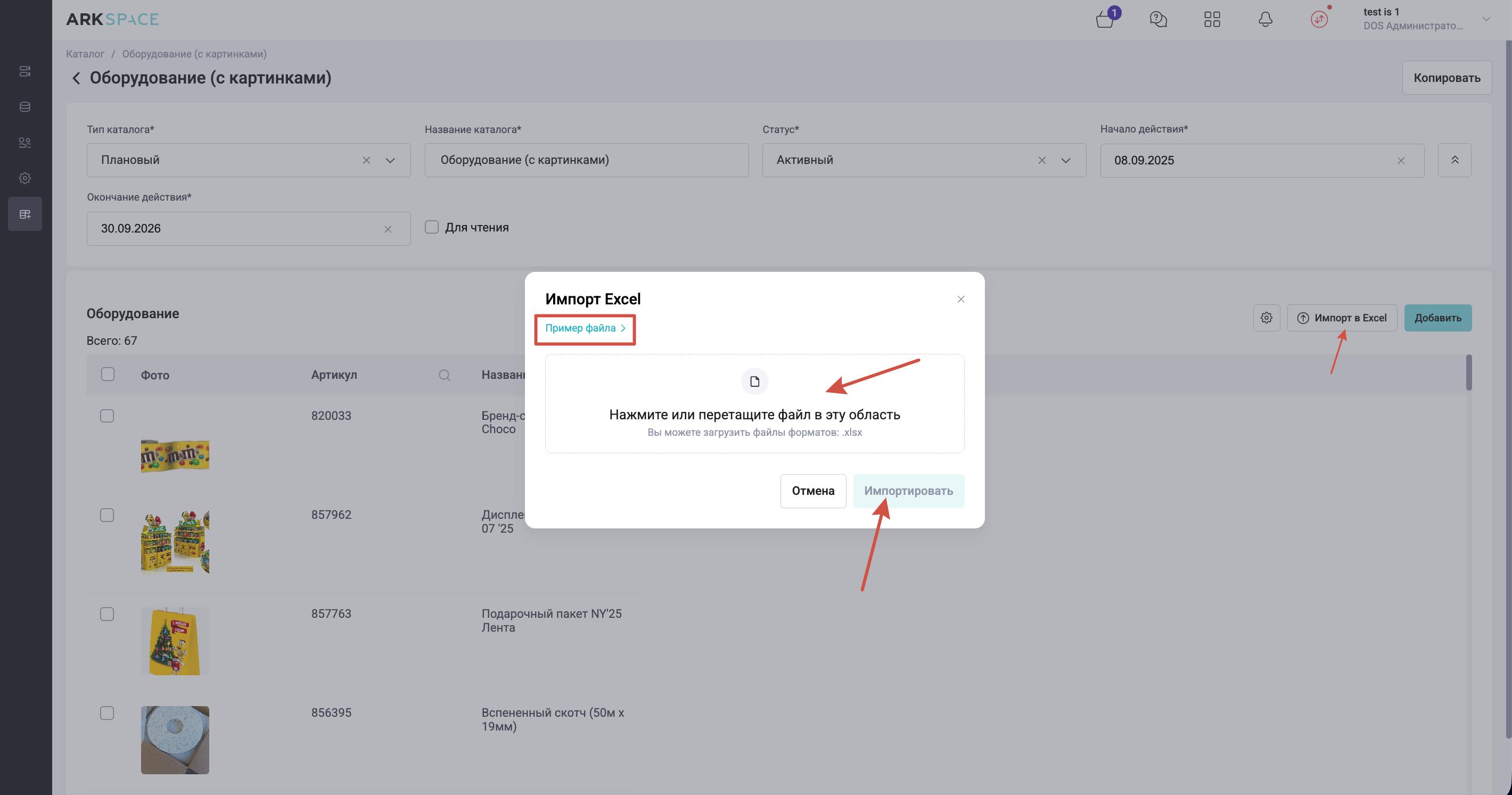 Если все пройдет успешно, система выдаст статус "Успешно" и Вы увидите данные из файла в каталоге. Если в файле были допущены ошибки, система не прогрузит такой файл и отобразит красным шрифтом ошибку.