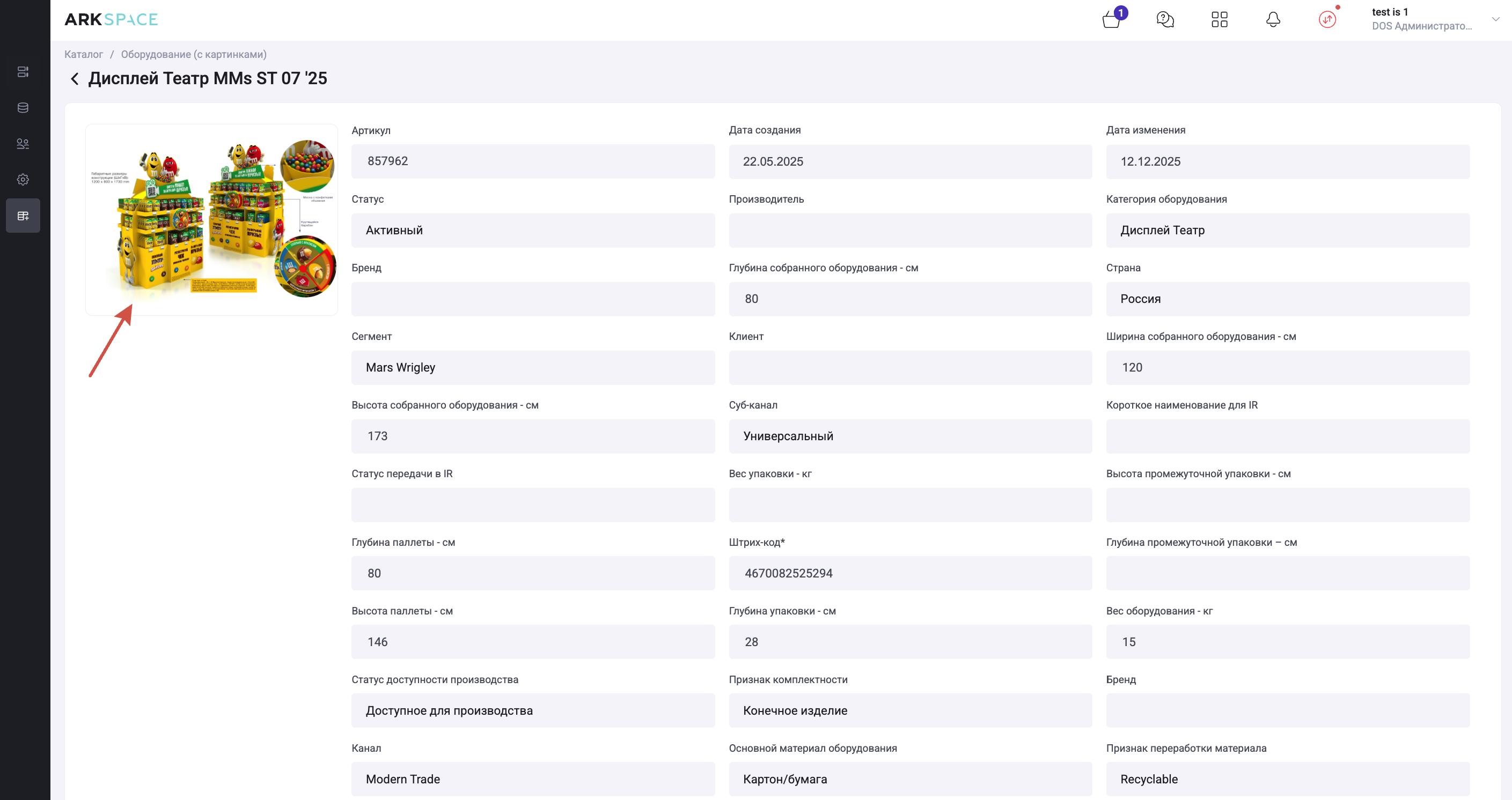- Массива POS-материалов (оборудования) в каталоге, отображаемого в т.н. каталожном виде – в виде плиток с основными атрибутами POS-материала и главной фото в виде миниатюры.