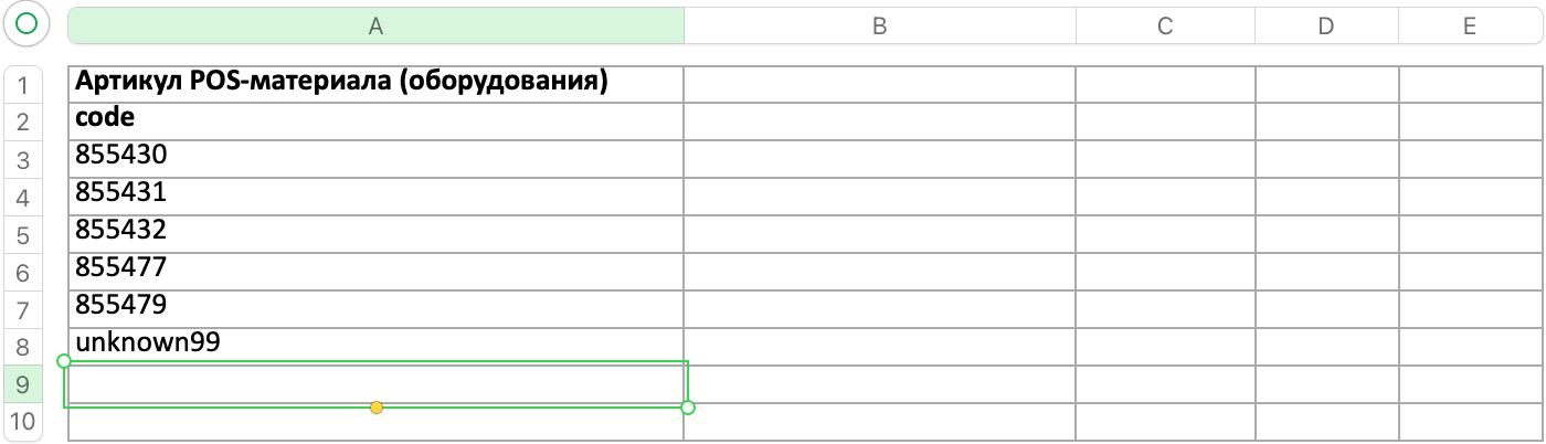 2. Читаем значения только из первой колонки и считаем, что это артикул (код) POS-материала.