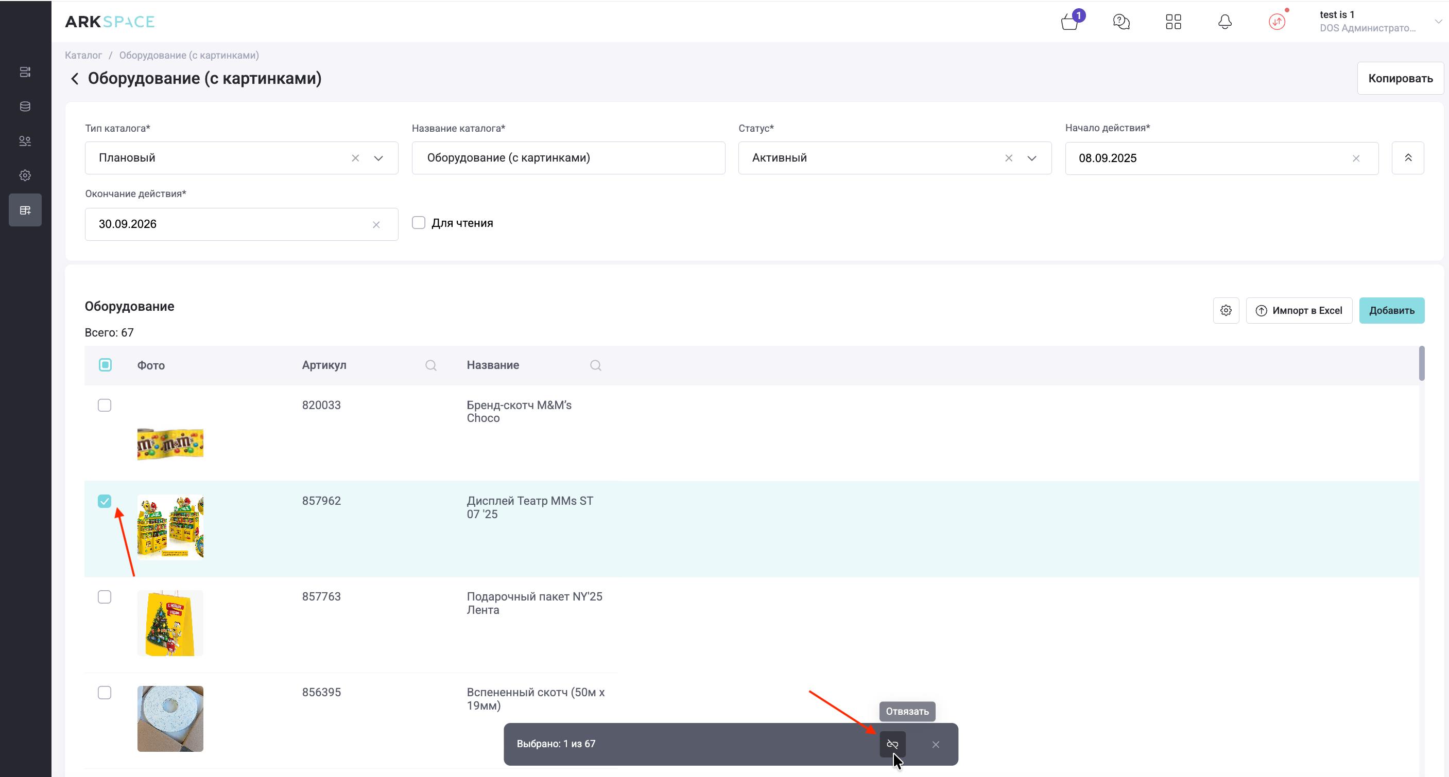 - Импорт из Excel – вызывает диалог выбора файла артикулов для добавления в каталог.