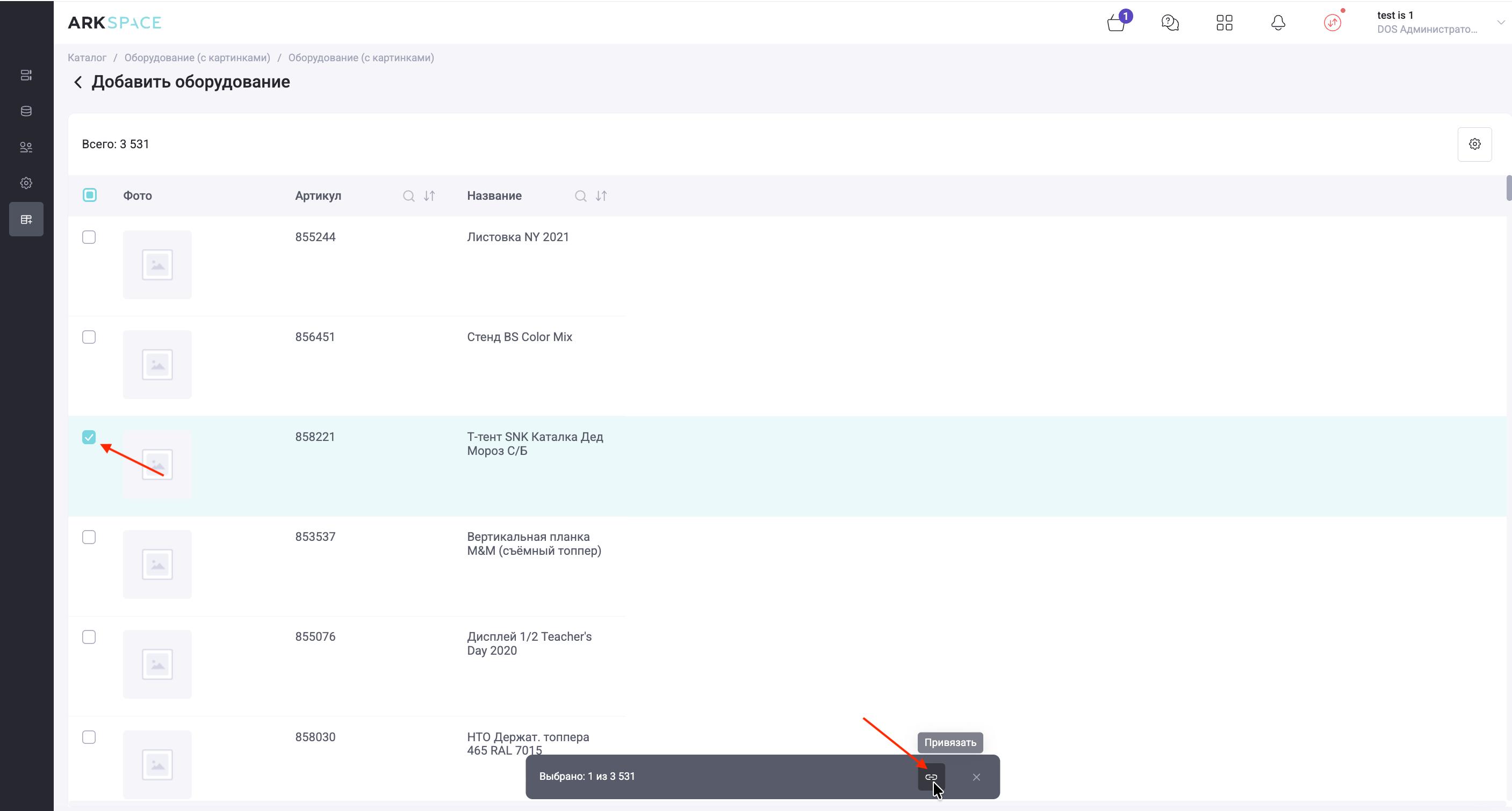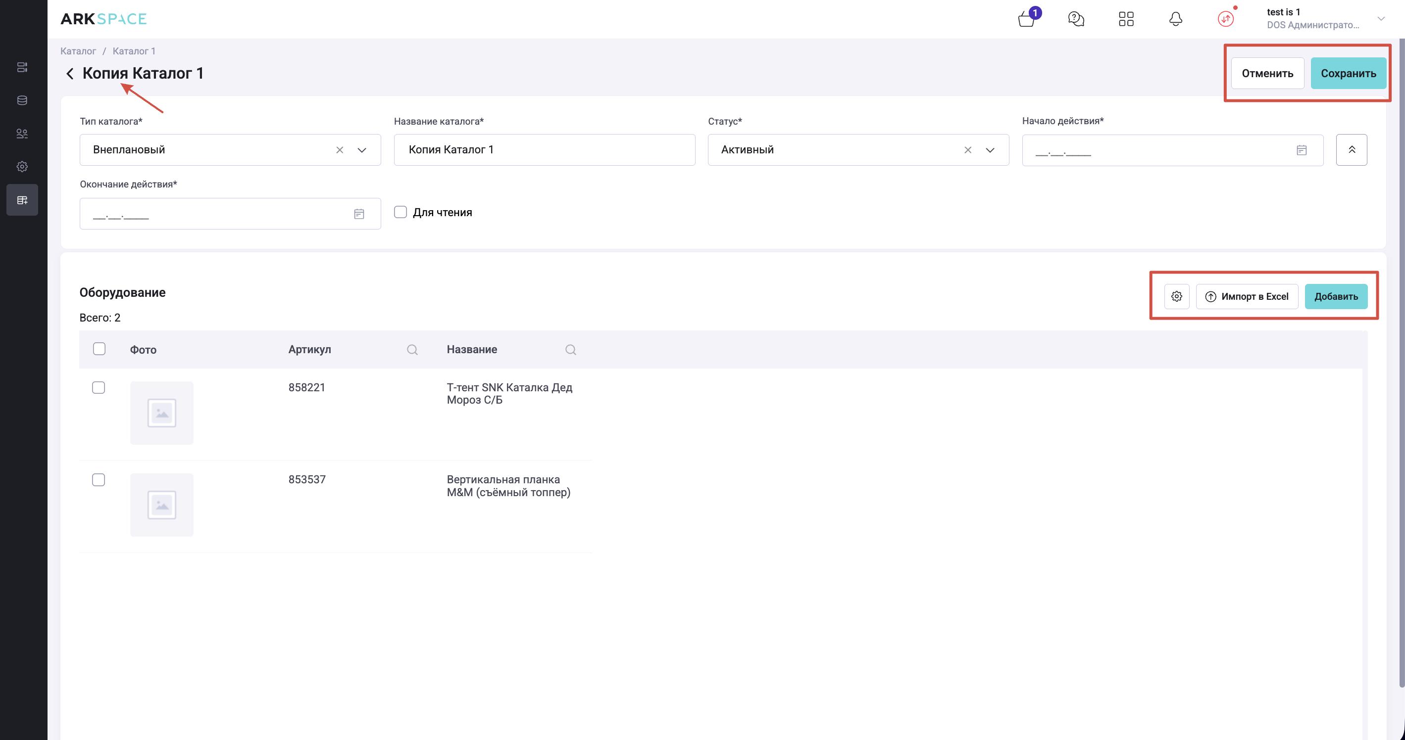 После сохранения нового каталога, будет доступно добавление оборудования в него: