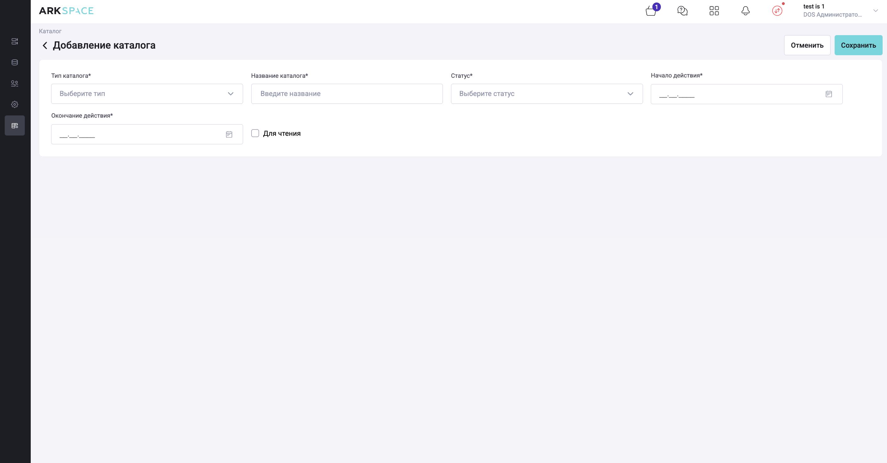- Дата начала действия, окончания действия получают значения по умолчанию как при создании каталога.