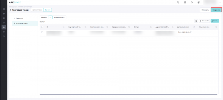 После добавления необходимых торговых точек следует нажать на кнопку Сохранить.