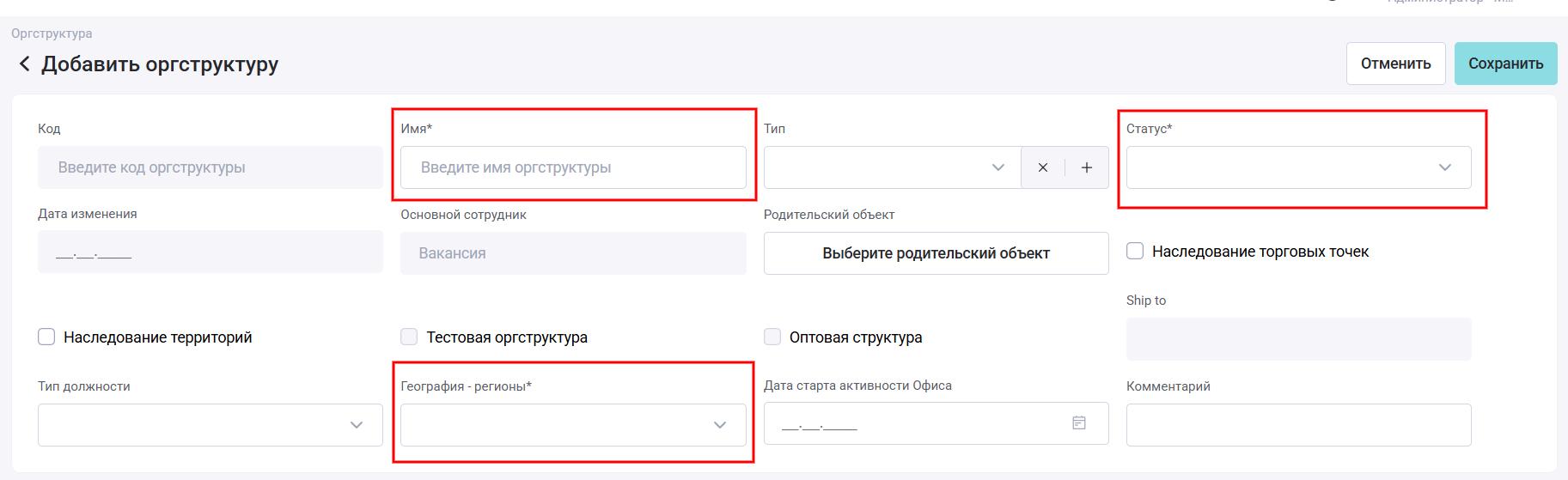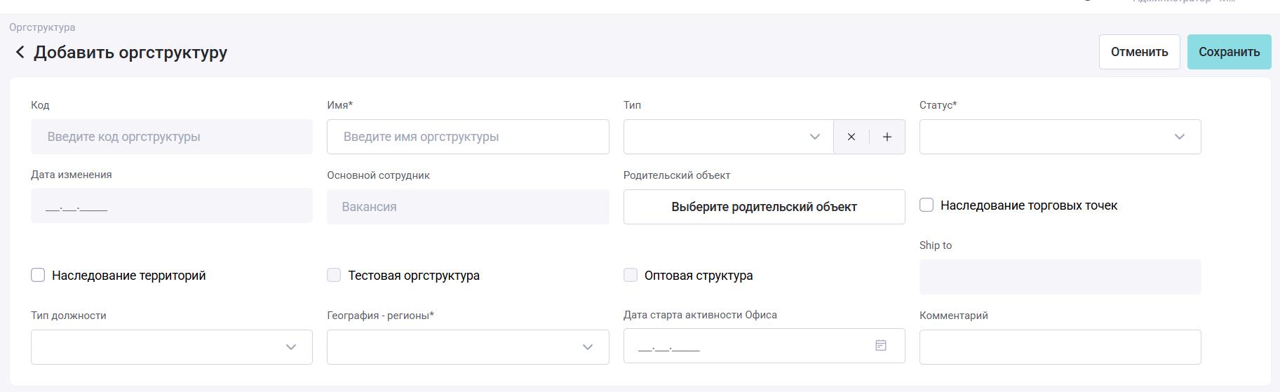 ВАЖНО! Привязка Клиента к оргструктуре обязательна, если не указывать Клиента, оргструктура будет считаться некорректной.