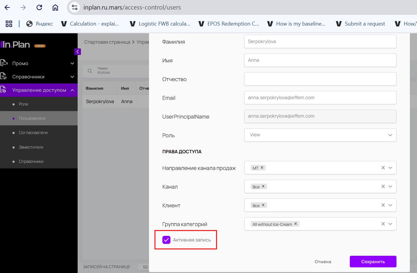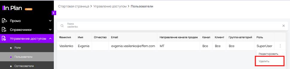Аудит пользователей InPlan