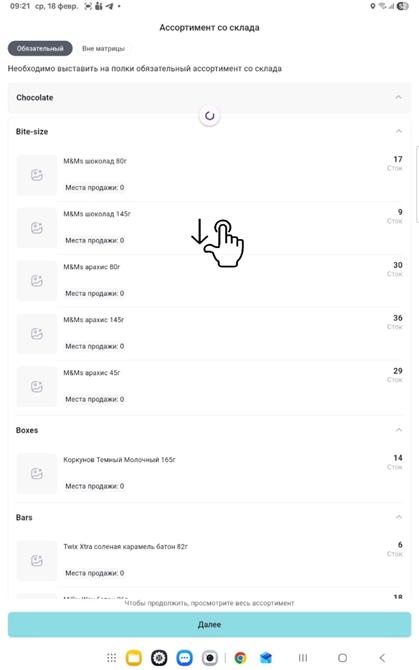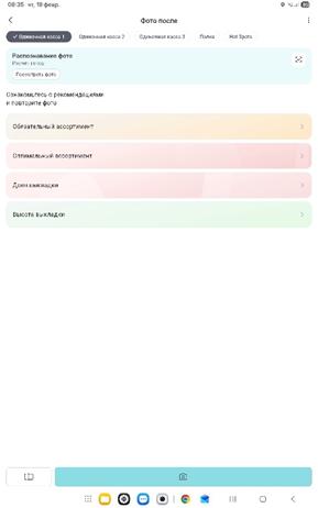 4. Переход к следующему экрану – при нажатии на кнопку «Далее» появится уведомление: «Вам стали доступны рекомендации по выкладке!» (детальная информация по данному экрану будет указана ниже).