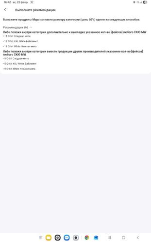 При наличии рекомендаций по доле выкладки (показатель красный или желтый):