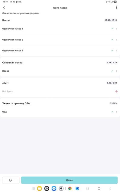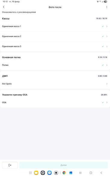 5. Кнопка «Далее», для перехода к следующему этапу, активна только в случае, если для каждой локации проставлена галочка, т.е. выполнено фотографирование для локации Места продаж.