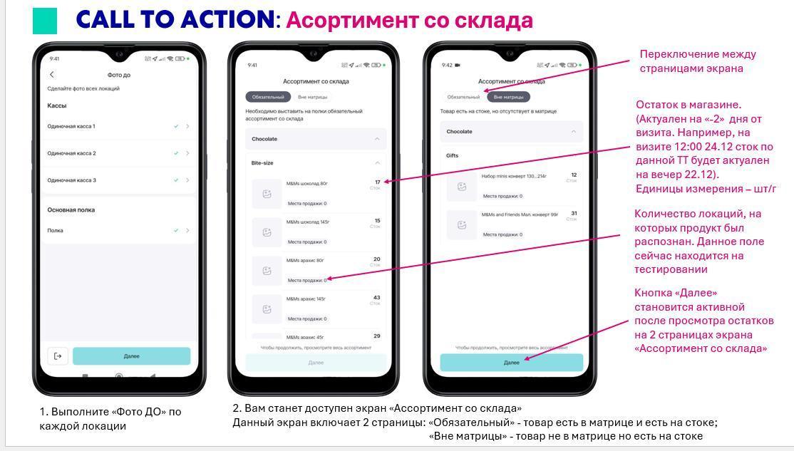 Если данные по количеству мест продаж в ассортименте со склада при переходе с этапа “Фото До”