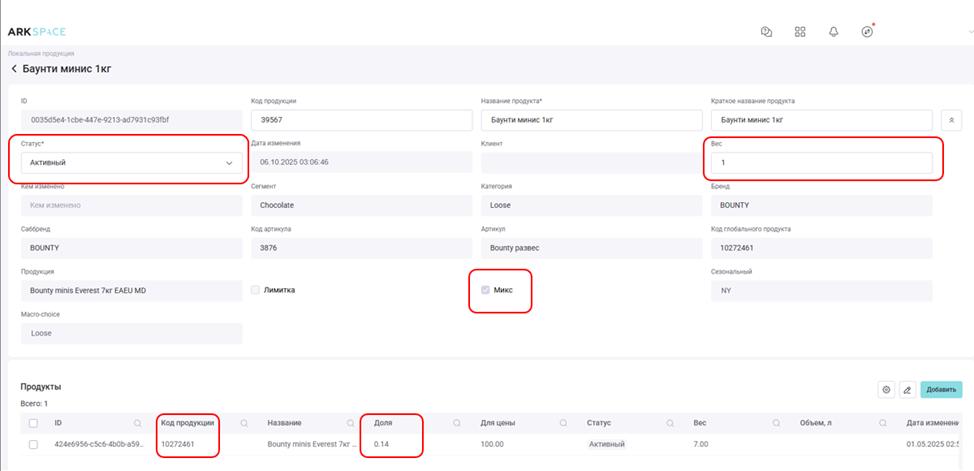 · Из отвязанной локальной позиции которая ранее выгружалась в продажи - необходимо сформировать микс таким образом чтобы количество в наполнении было рассчитано по формуле, указанной в п.2.