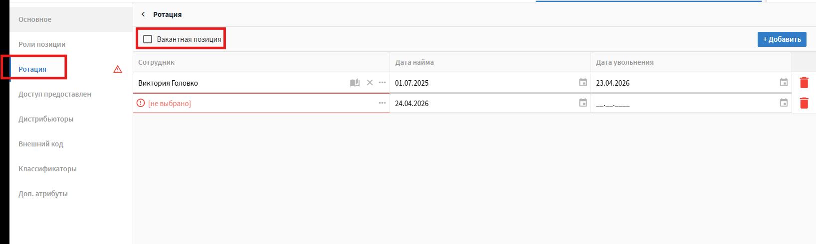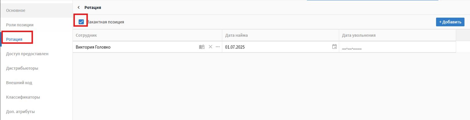 В оргпозиции в Ротации ставим галочку на "Вакантная позиция"