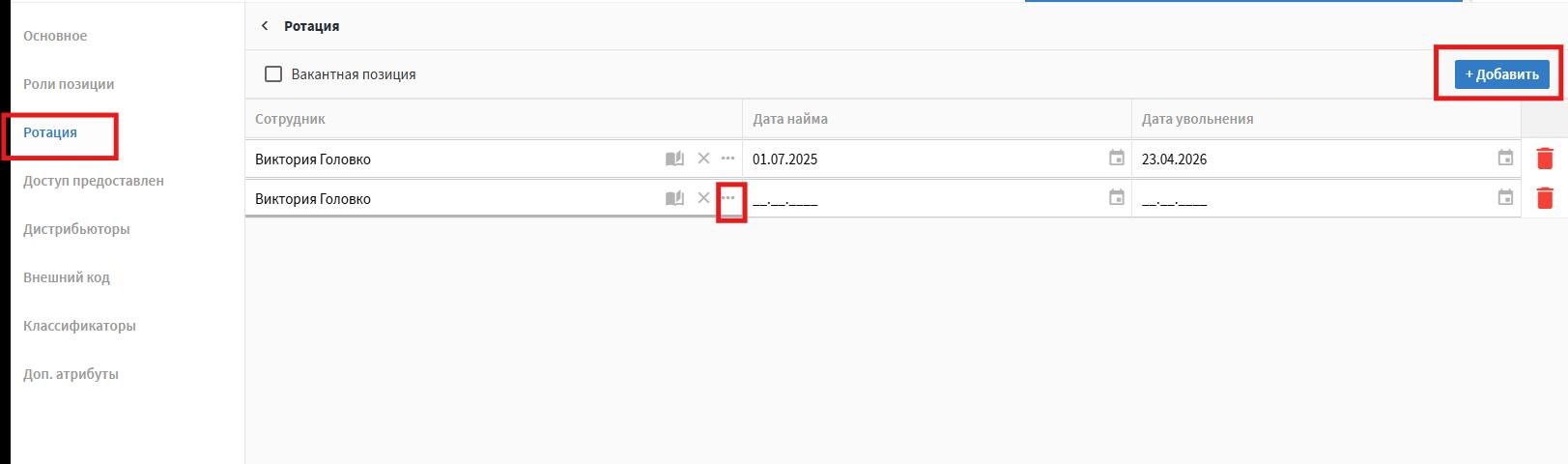 появляется новая строка и через три точки из справочника сотрудников выбираем нового сотрудника.