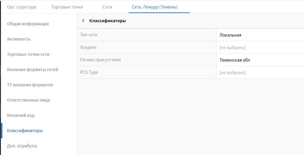 В классификаторах заполняем тип сети (из шаблона) и регион присутствия (область)