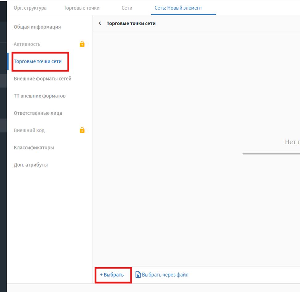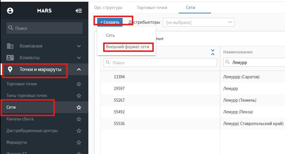 1.Торговые точки и маршруты-Сети-Создать-Внешний формат сети