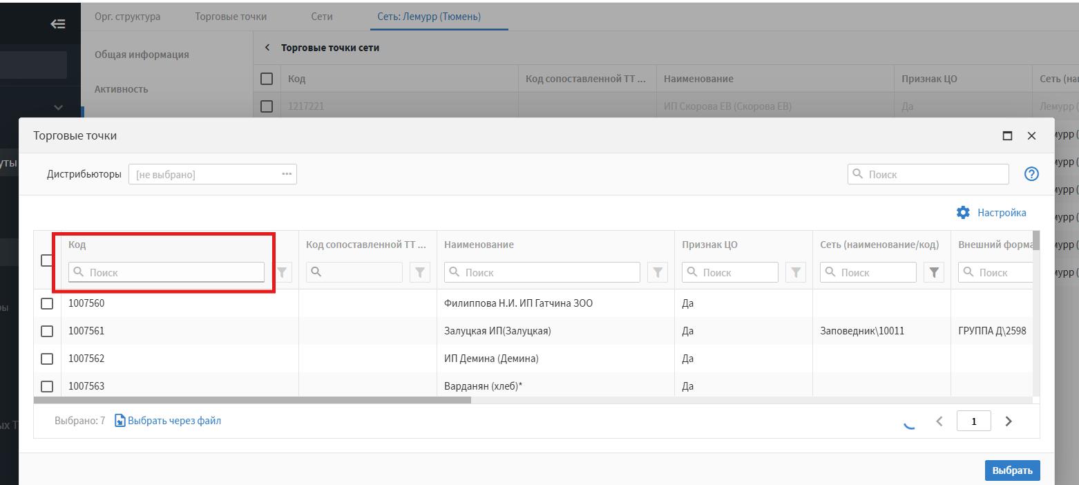 Торговые точки -выбрать (если тт мало, можно добавить руками), откроется справочник тт.